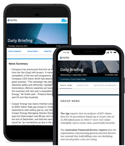 Our daily news summary provides a curated and comprehensive snapshot of the latest news, delivered across your organisation in a format that is unmatched in media intelligence. From the time you receive it, to the topics that matter, to the key people who need to know – we deliver a professional, mobile-friendly, digest of the media coverage your people should know.