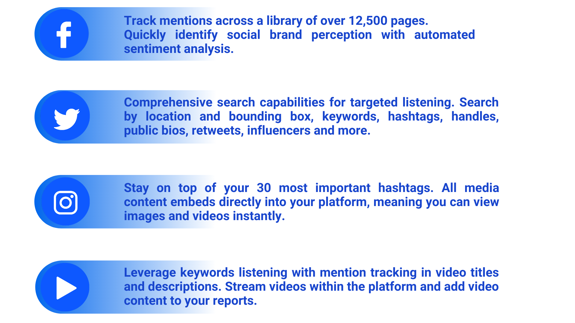 Theo dõi các chủ đề có liên quan của bạn trên nhiều kênh truyền thông xã hội bao gồm Facebook, Twitter, YouTube, Instagram, Tumblr và Reddit. Với quyền truy cập đầy đủ vào gần hai triệu blog xã hội, diễn đàn và trang hỏi đáp, chúng tôi sẽ làm việc với bạn để chỉ cung cấp nội dung quan trọng với bạn.